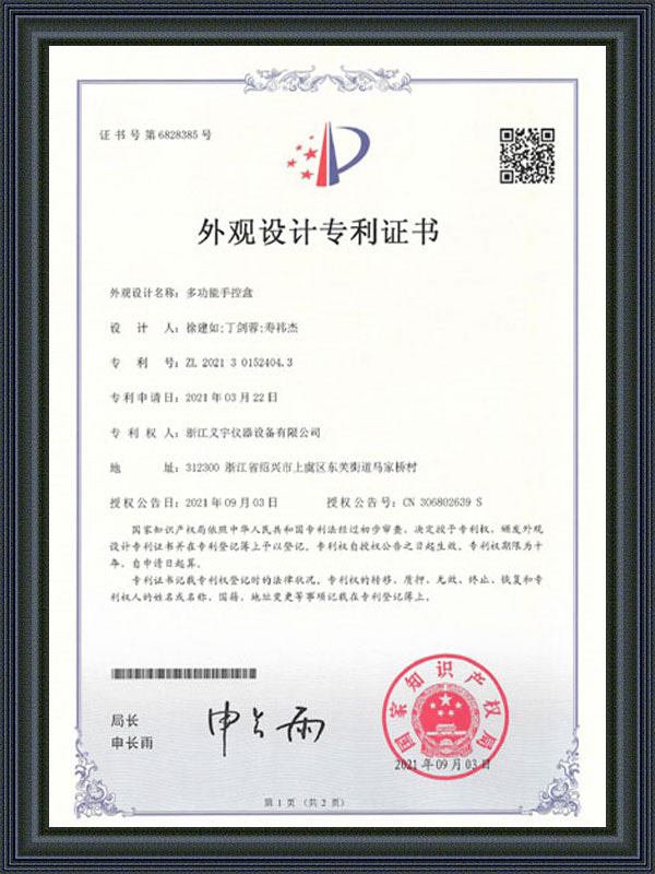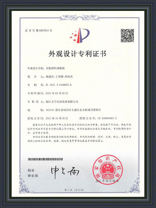 외관 디자인 특허증