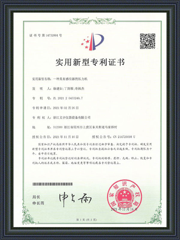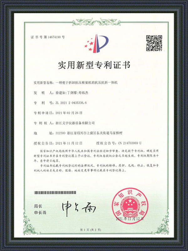 실용신안 특허증